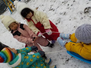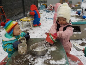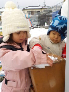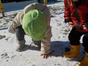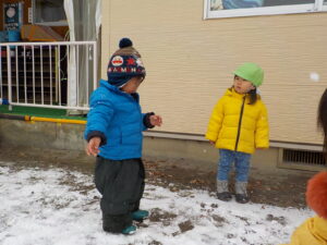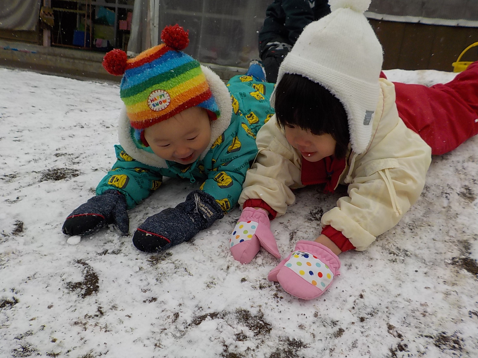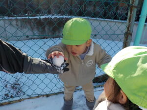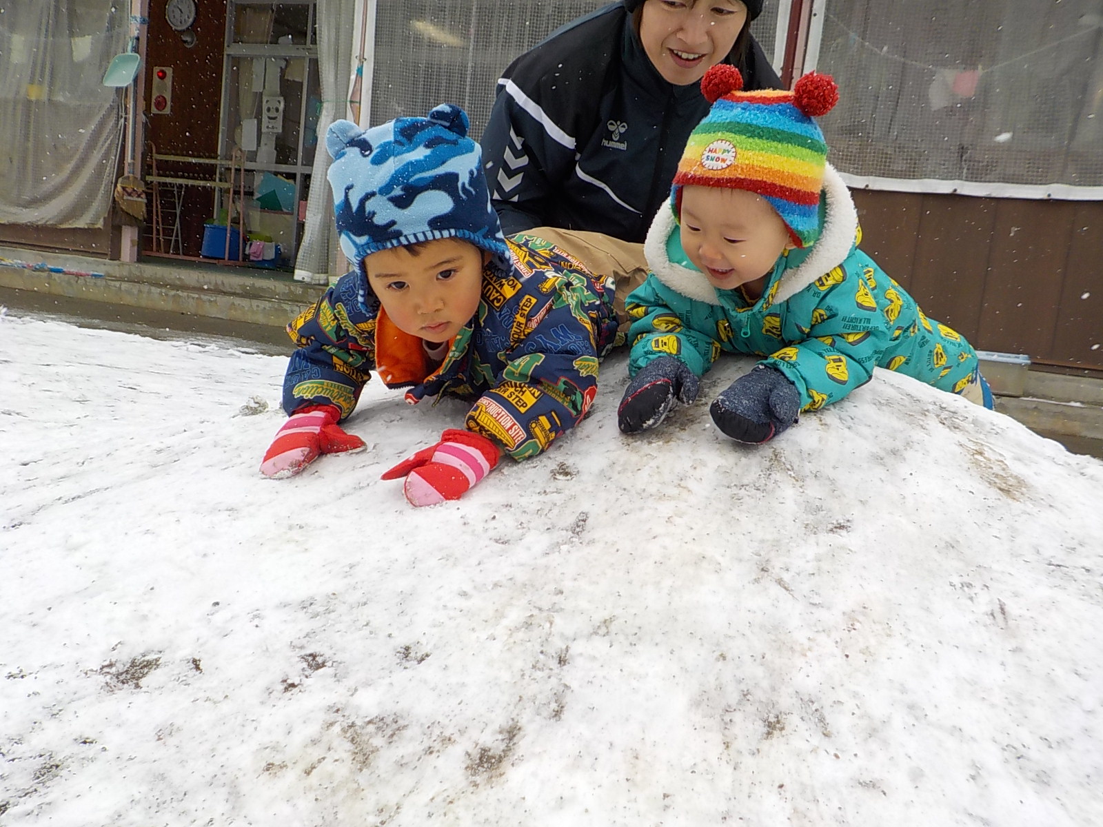 いましたが友だちの姿を見て少しづつ雪に触る姿が見られるようになり