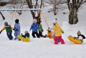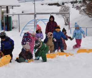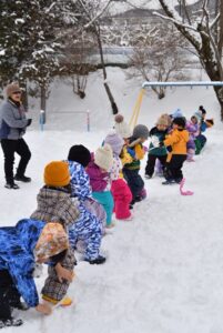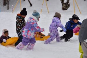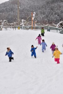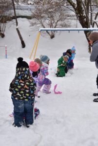 ・冬ならではの雪遊びに全身を使って遊び、心身ともにたくましく育ってほしい。