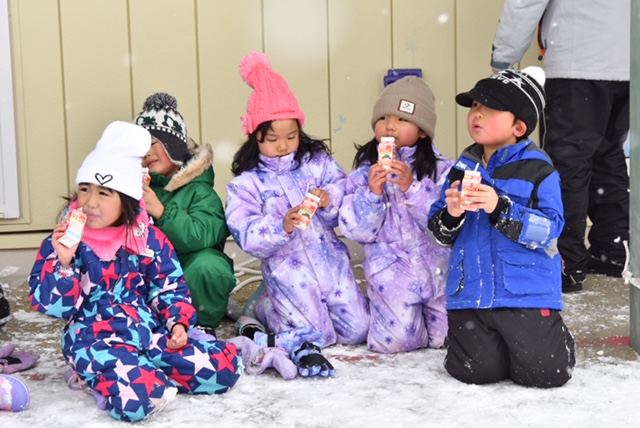 ※雪が降っていても、もっともっと雪遊びを楽しみたい子ども達でした。その後もいっぱいいっぱい遊びました。