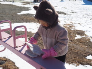 冬の寒さ、雪の冷たさを感じることができた一日。みんなで雪遊びを通して様々な想像を膨らませられました。