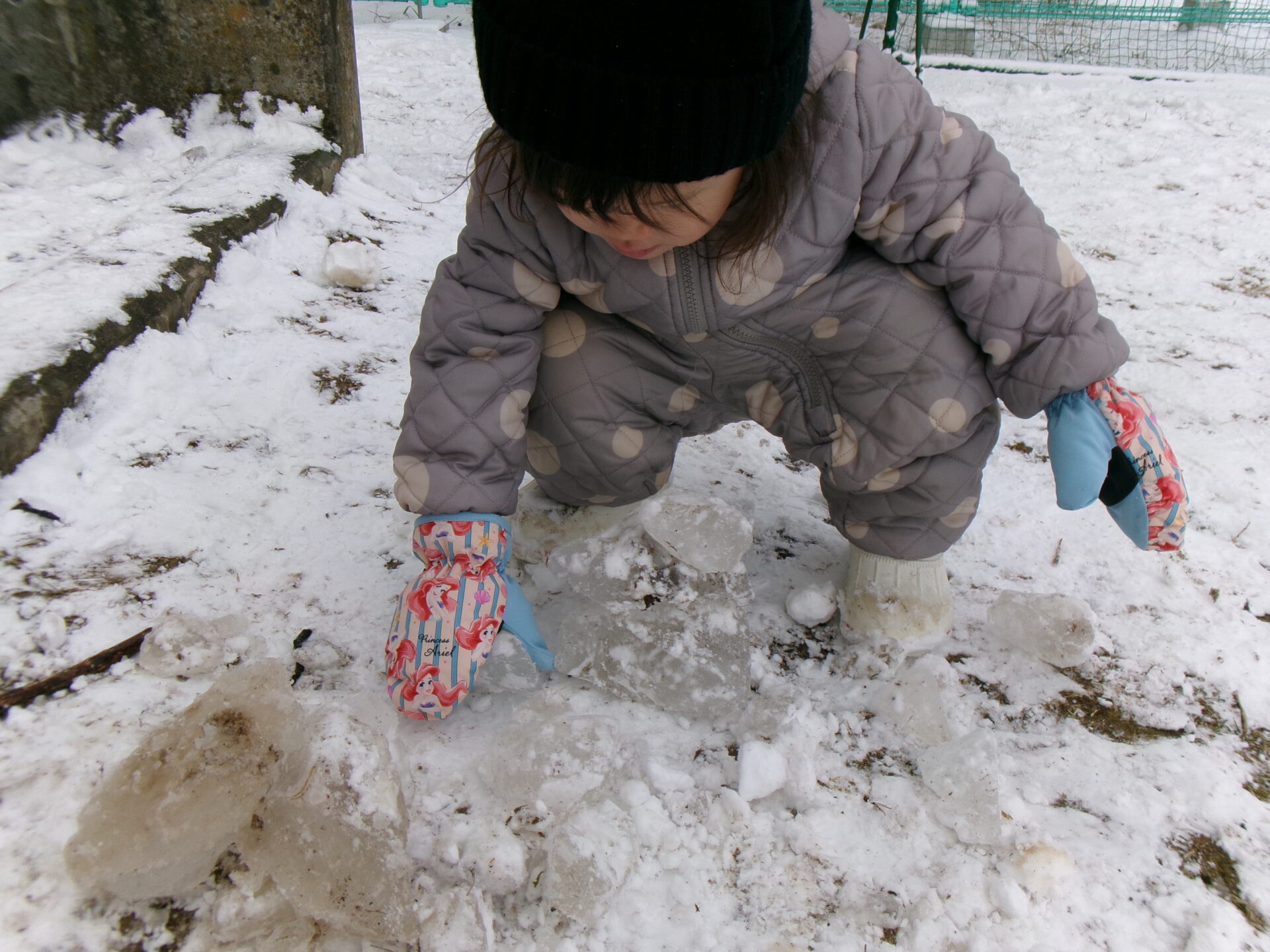 自然にできた氷、けど明日にはないかもしれない氷。 そんな冬ならではの体験でした!