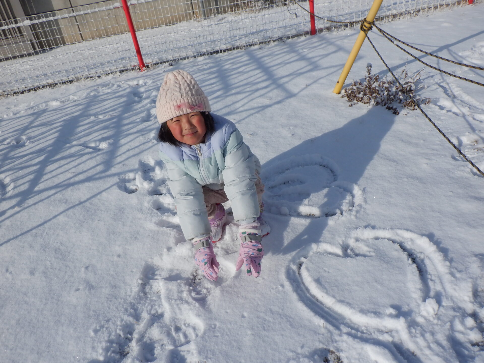 嬉しくて早速雪遊びをはじめた子ども達。