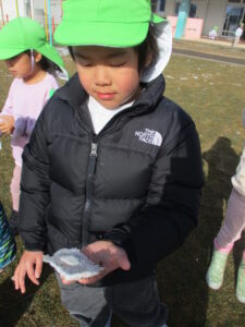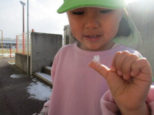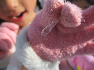 冬ならではの自然事象に気づき、遊びにとり入れて楽しむ中で興味関心を更に深めていってほしいと思いました。