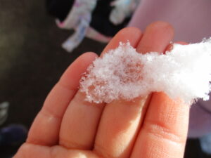 色々な雪の形をさがしてみたてて、いろいろなかたちの雪をさがしていると