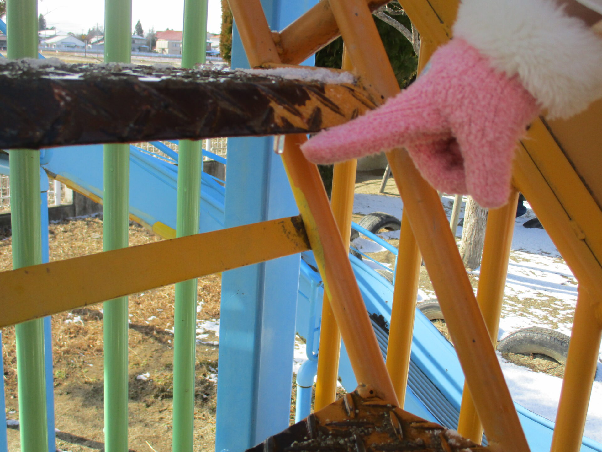 「どこにあったの?」「すべり台の階段のところ」