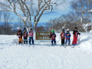 スキー教室最終回はお家の人と一緒に滑るスキーツアー!!絶好のスキー日和となり、遠くの海まで見えて最高の景色でした。一番上のグループは毛無山からの滑走に挑戦。コブがある箇所やジャンプができる箇所を滑る楽しさを味わいました。真ん中のグループは列になって山頂からの滑走。新雪の傾斜に魅力を感じてちょっと脱線、密かに楽しむ子もいたようです^^;一番下のグループはハの字に開いて止まることが上手になり、前の子を追い越すことなく絶妙な間隔を保ちながら周りの景色や様子を見渡す余裕もできて滑る楽しさを味わっていました。