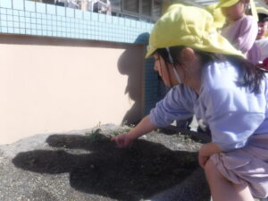 「これ、オオイヌノフグリだよね」「いっぱい咲いているよ。こっちにもある。」