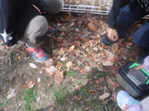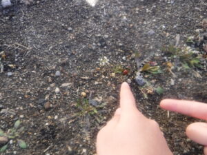 「てんとう虫、探しているの」「この枯れ葉の中を掘ると出てくるんだよ」