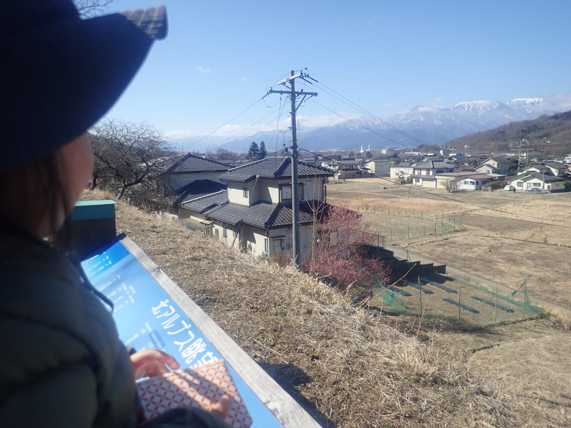 廃線敷からは眺めがよく北アルプスの山々や明科の街を見渡すことができます。