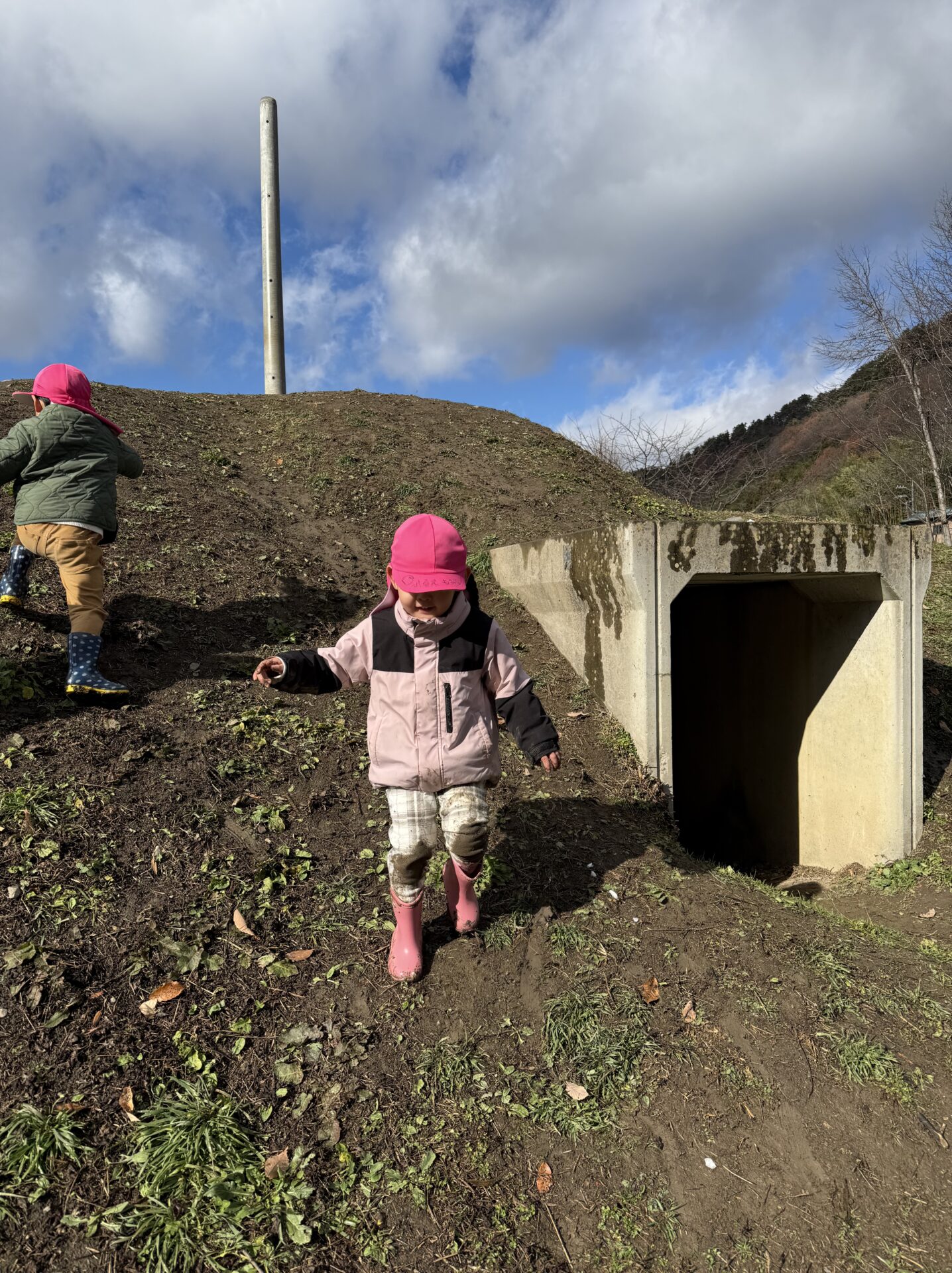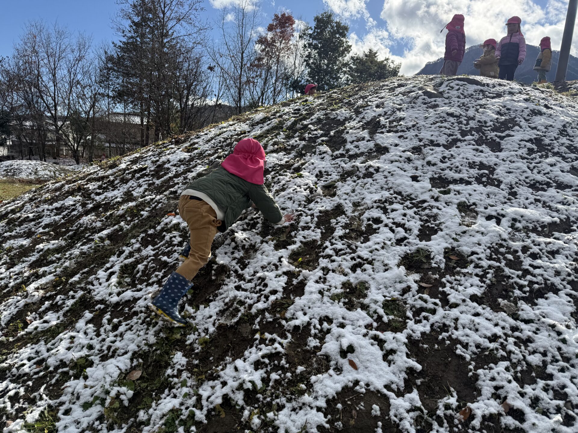 築山を登ったり、かけ下りたりして、足腰も強くなっていきます!