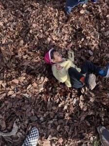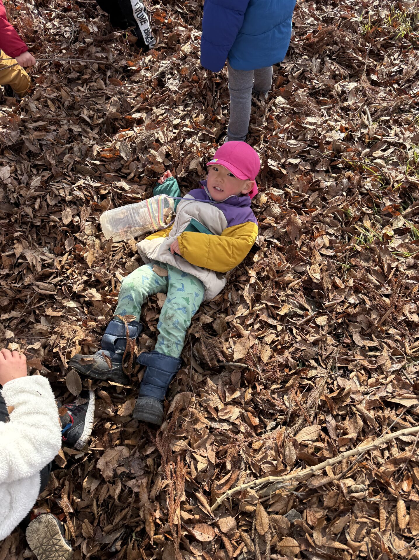 落ち葉の上に寝転んでみると、、「ふかふかしてる!」「あったかいね」