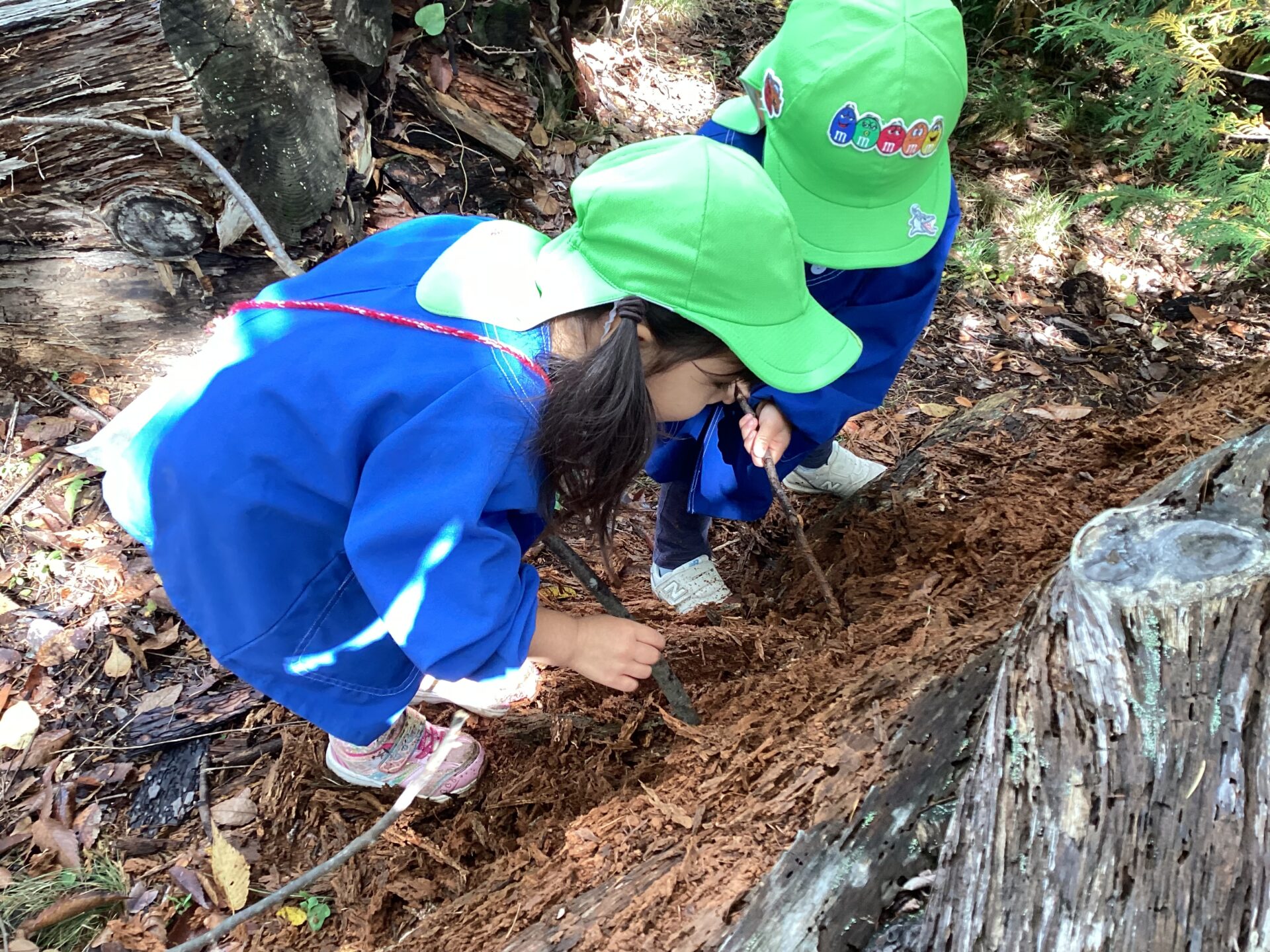 「むしさんがかくれてるよ」「し〜!」と優しく虫を見守る子どもたちでした。