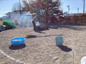 年長・年中児さんで焼き芋の準備を朝から始めました。