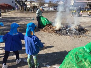 大切に育ててきたさつまいもを園全体で焼き芋会することで、年長児への感謝や食べ物をつくってもらうことへのありがたさを感じる機会になったと思います。