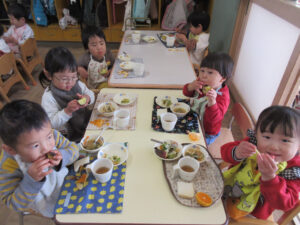 未満児クラスさんも給食の時間に食べ「美味しいねえ」とよろこんで食べていましたよ。