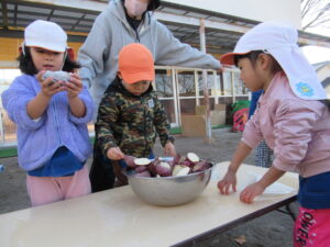 同じさつまいもでも形や色が違うことに「どうして?」と不思議がる様子もありました。