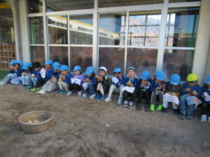 戸外で食べることの特別感は昨年度も経験している年長・年中児にとって記憶に残るものになっており楽しみに登園してくる様子が見られました。園ならではのできる行事をこれからもしていきたいと思います。