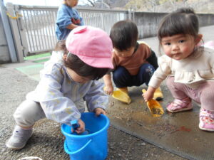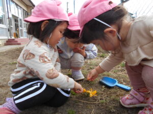 冬の寒さが和らぎ、共和保育園でも春の自然が見られるようになりました。