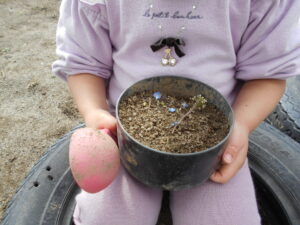 「ご飯作ったよ!」と持ってきた器の中には、オオイヌノフグリが飾られていました。