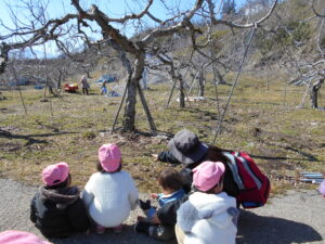 でも確実に春は近づいていて、また暖かくなった日に園周辺のリンゴ畑へ。