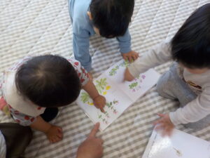 子ども同士の会話でも「おはな、あるかなぁ」「あるよ!」などと話もはずみます。