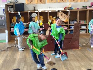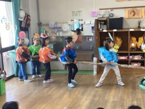根っこを、うんとこしょ・どっこいしょと引っ張った遊びから