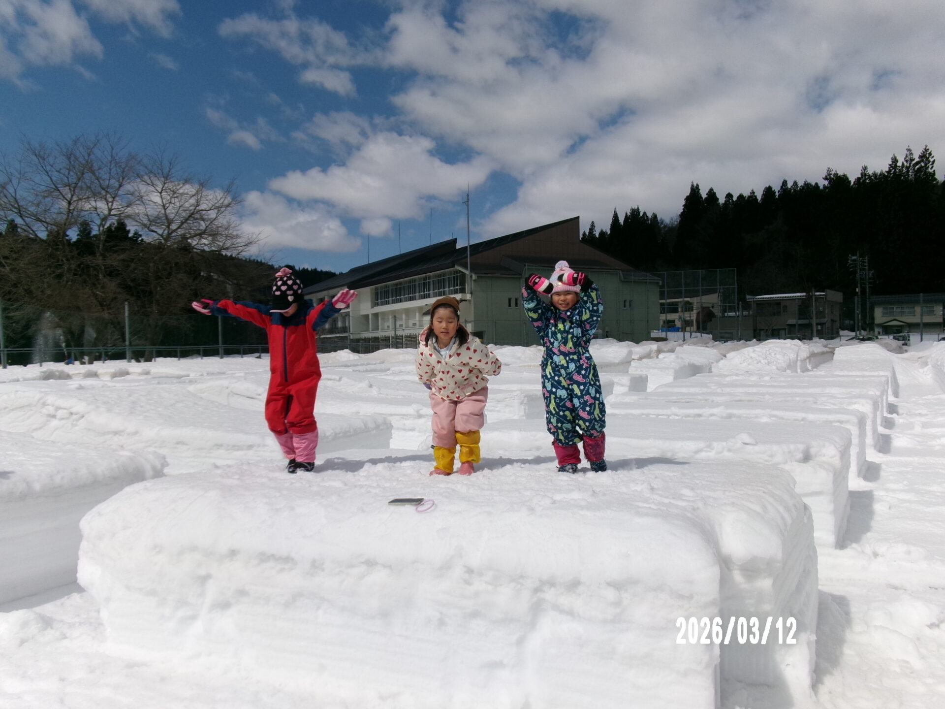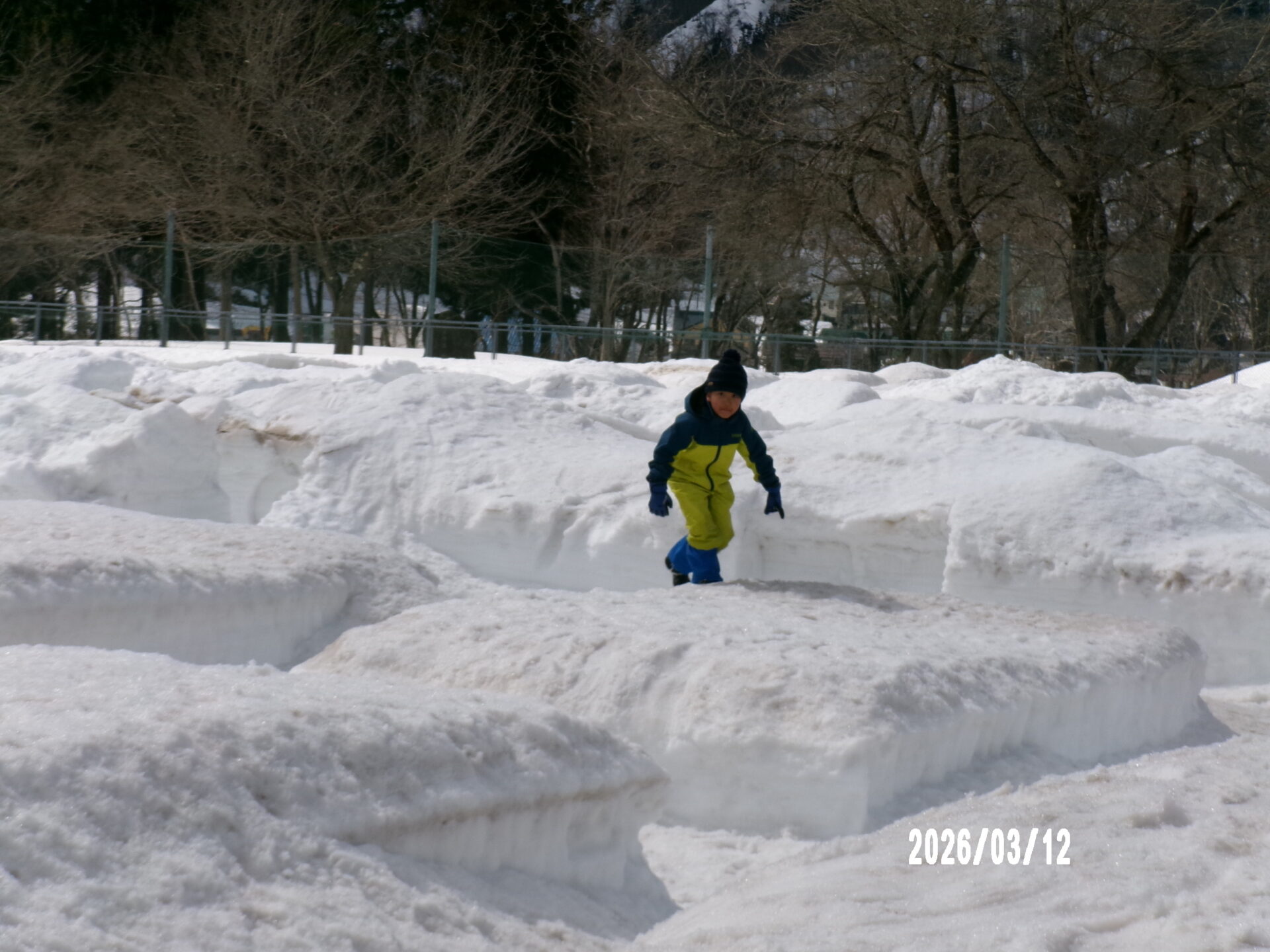 除雪隊のおじさんたちが、子どもたちの為に除雪機で迷路みたいにしてくれました。