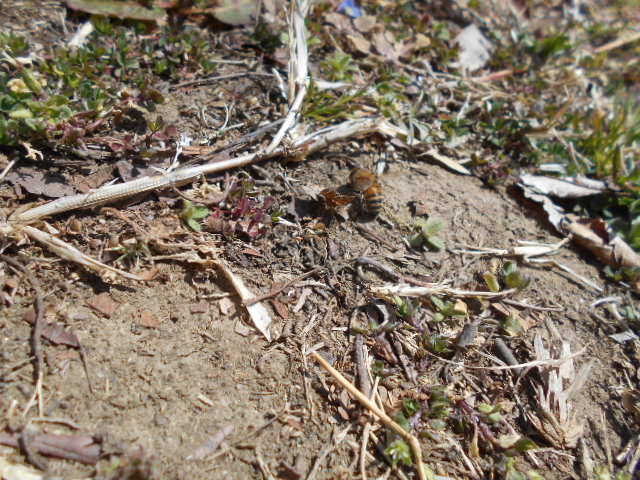 ・ハチがいるよ!このお花(オオイヌノフグリ)食べてるね!!おいしいのかなぁ?