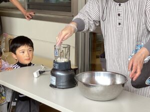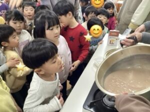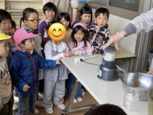 こんにゃくの匂いに触れたことがない子も多く、「くさーい!」と鼻をつまんでいましたが、その表情もニコニコ嬉しそう。初めての経験ができてよかったね(^^)