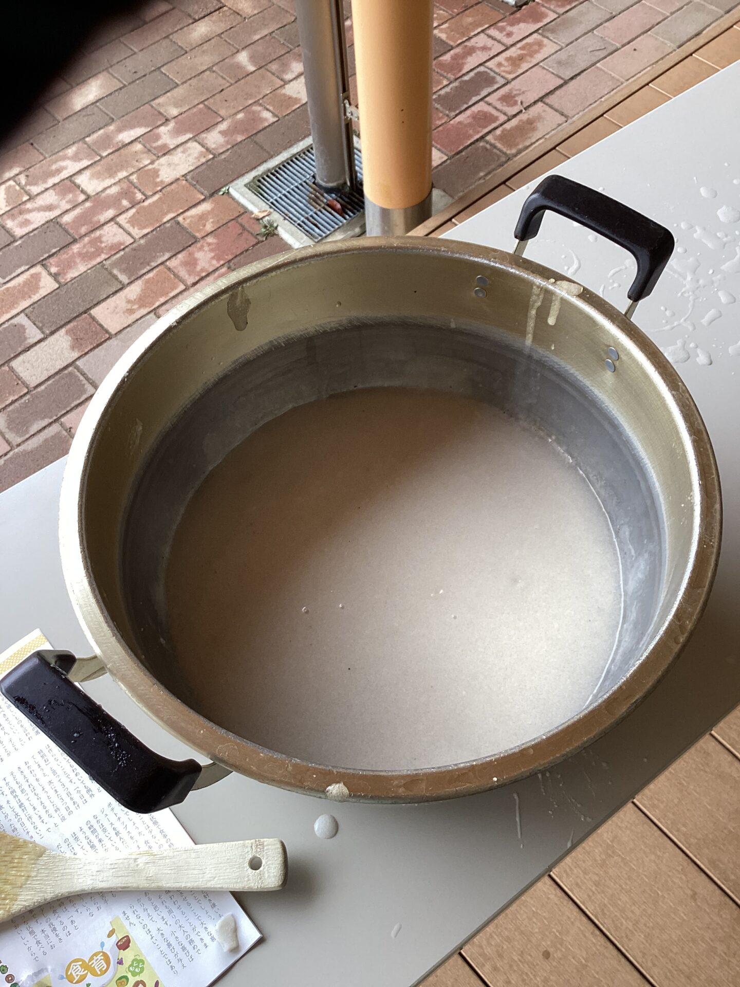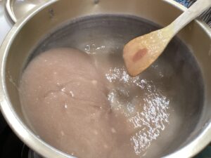 そしてトロトロになった芋にこんにゃく用の炭酸ソーダを入れます。混ぜていくと、、、