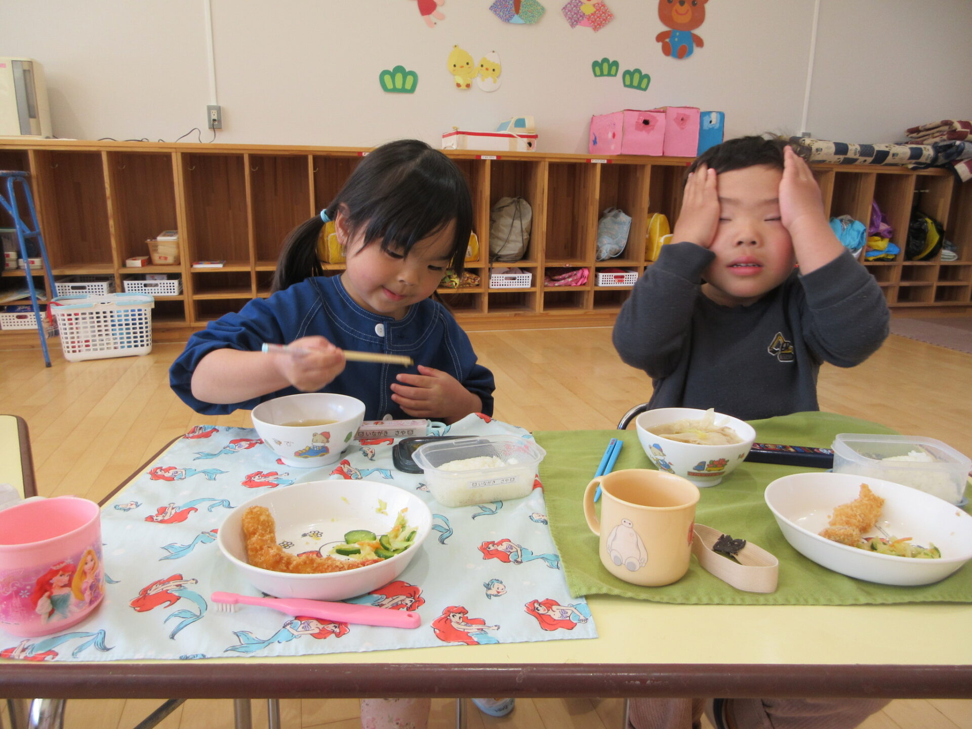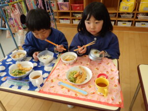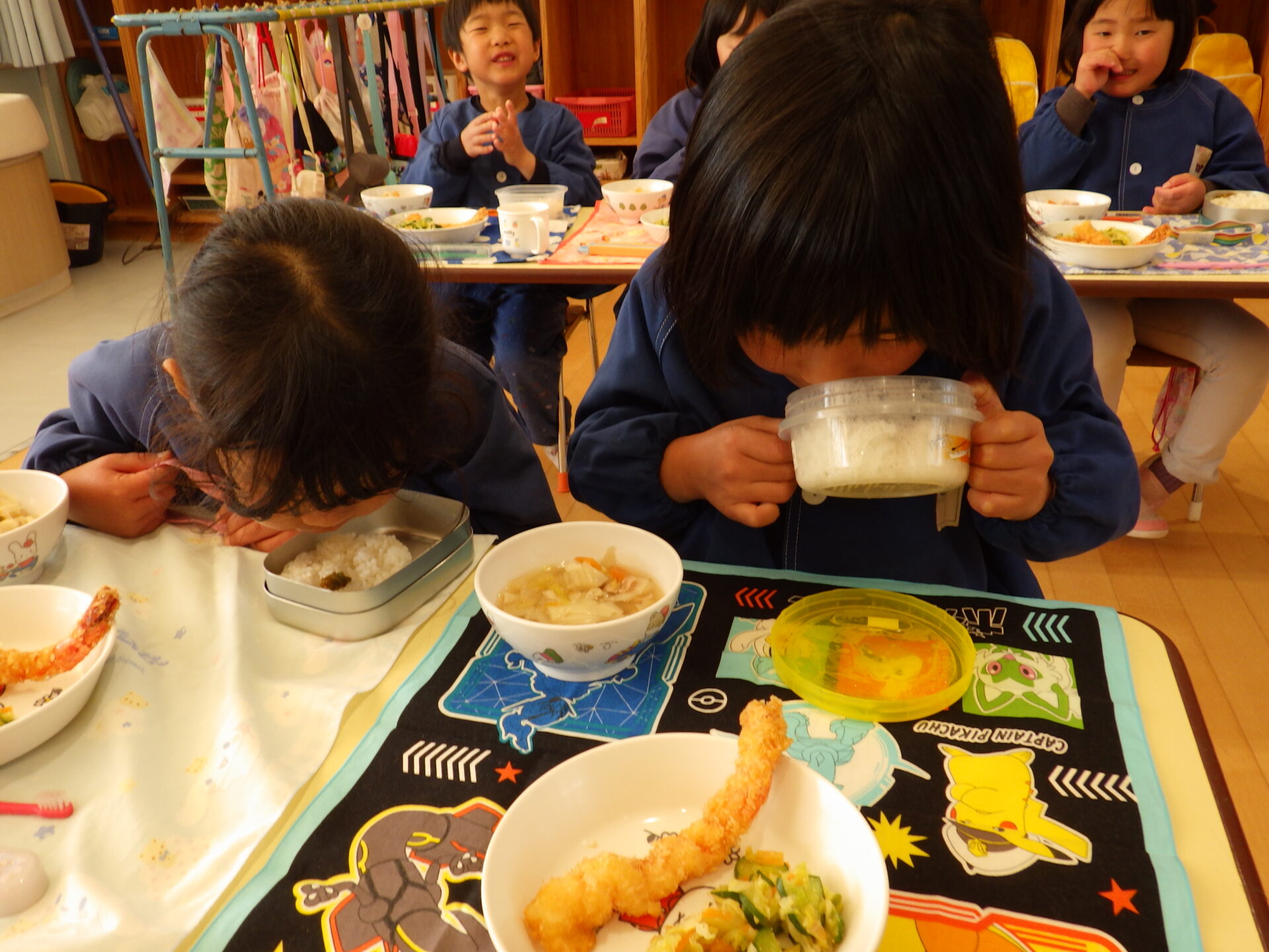 他のクラスで残った分まで「欲しい!食べれる!のせて、のせて」とご飯と一緒にモリモリ食べていました。