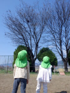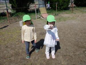 新年度がスタートして、張り切って戸外で遊ぶ子どもたち。