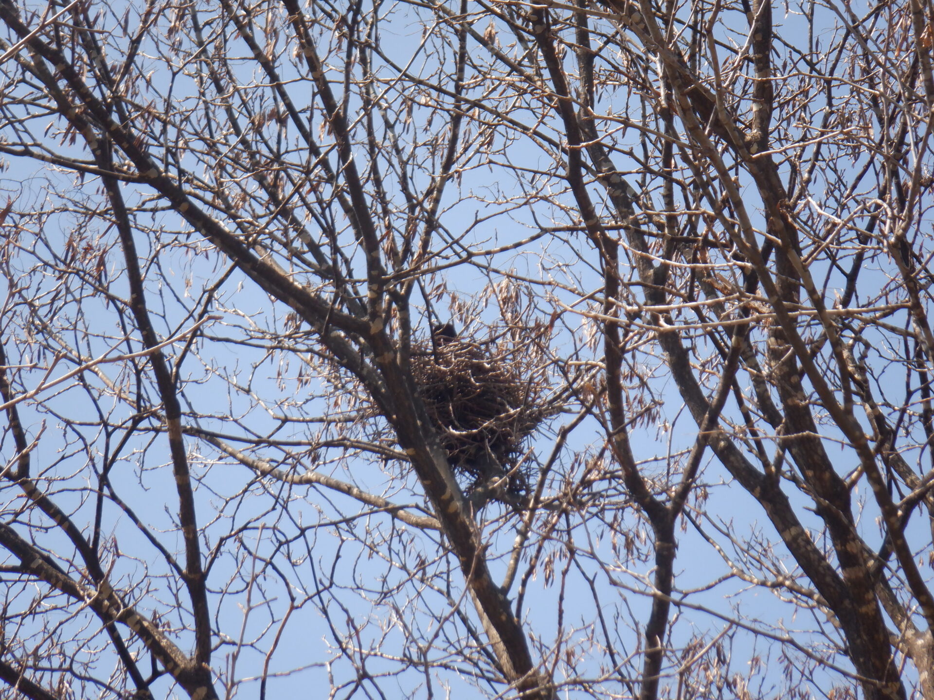 ・カラスの巣は、木の枝がたくさん!細い枝を使ってる!
