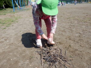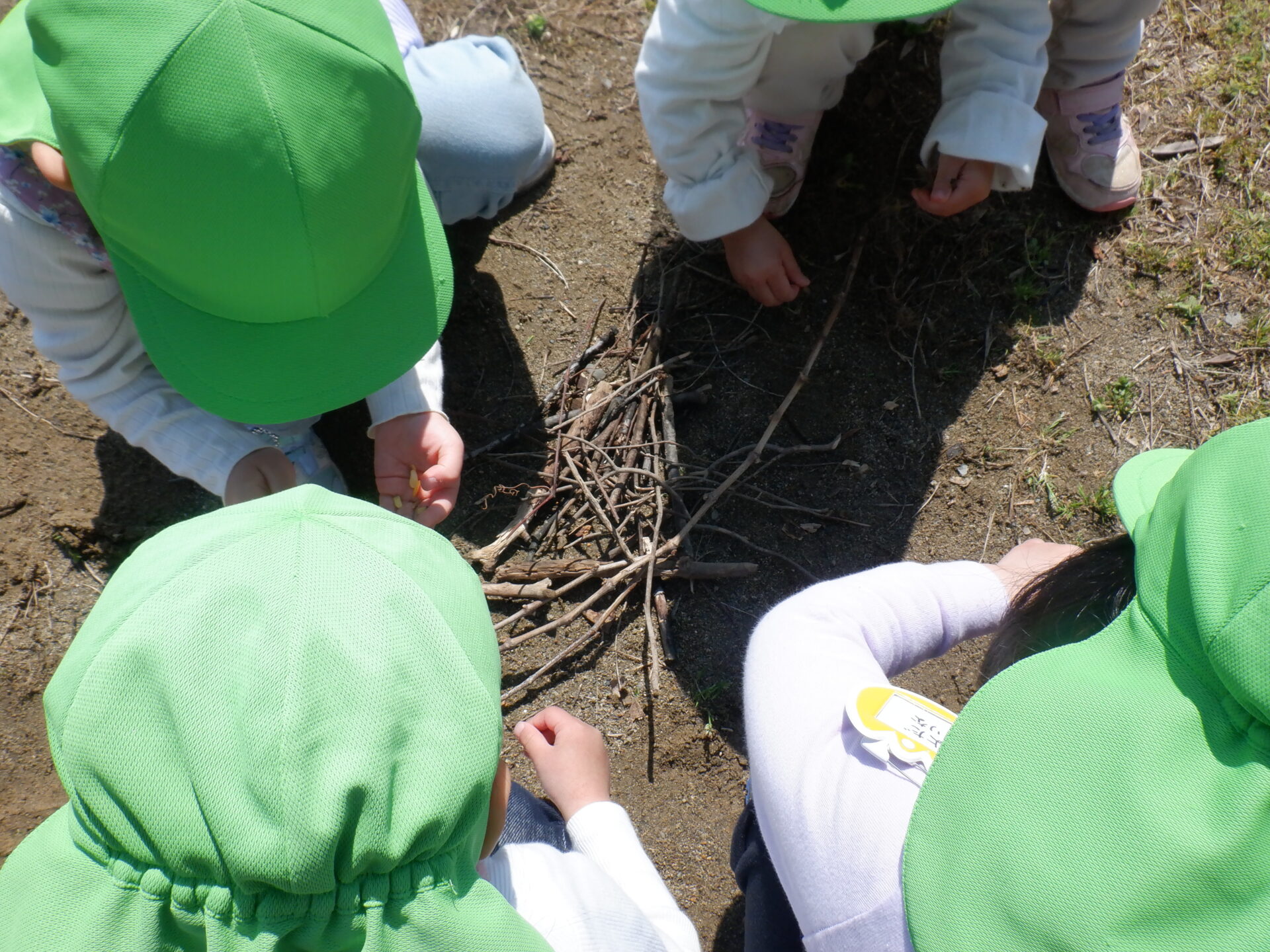 「木の枝を集めよう!」さっそく木の枝探しがはじまりました。