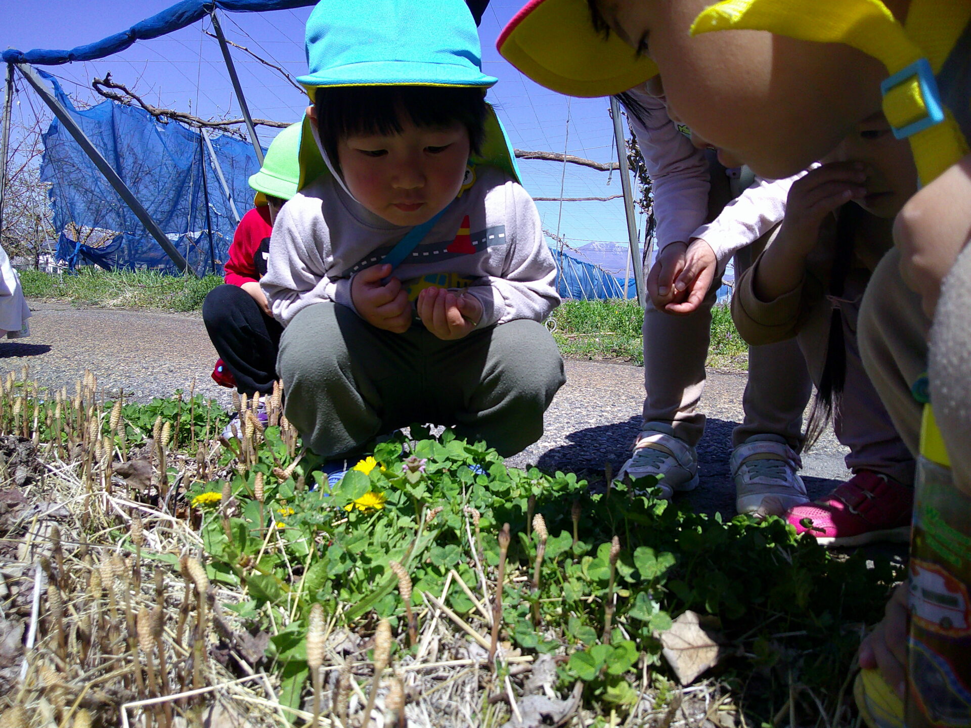 「あ、つくし!」「こんなにいっぱいあるよ!」
