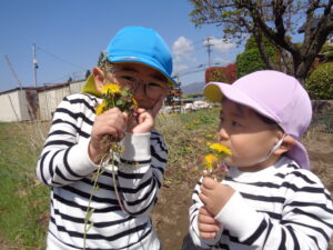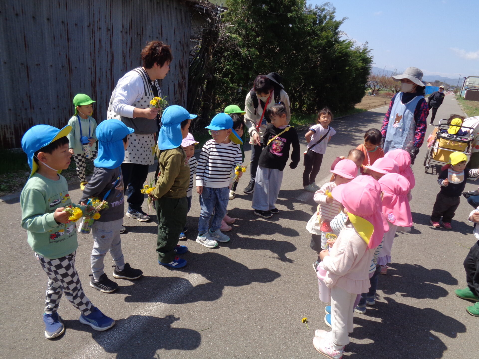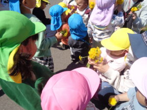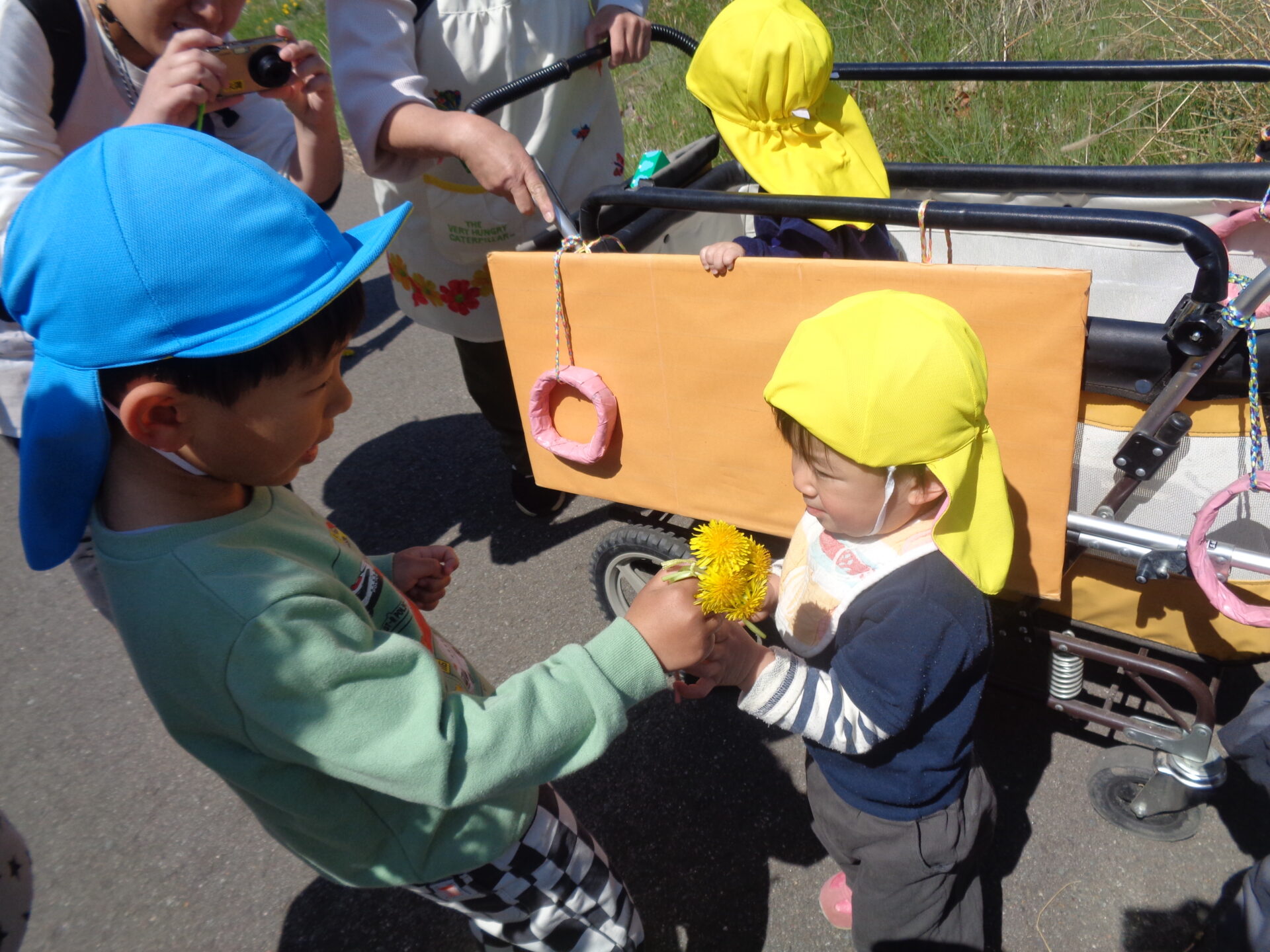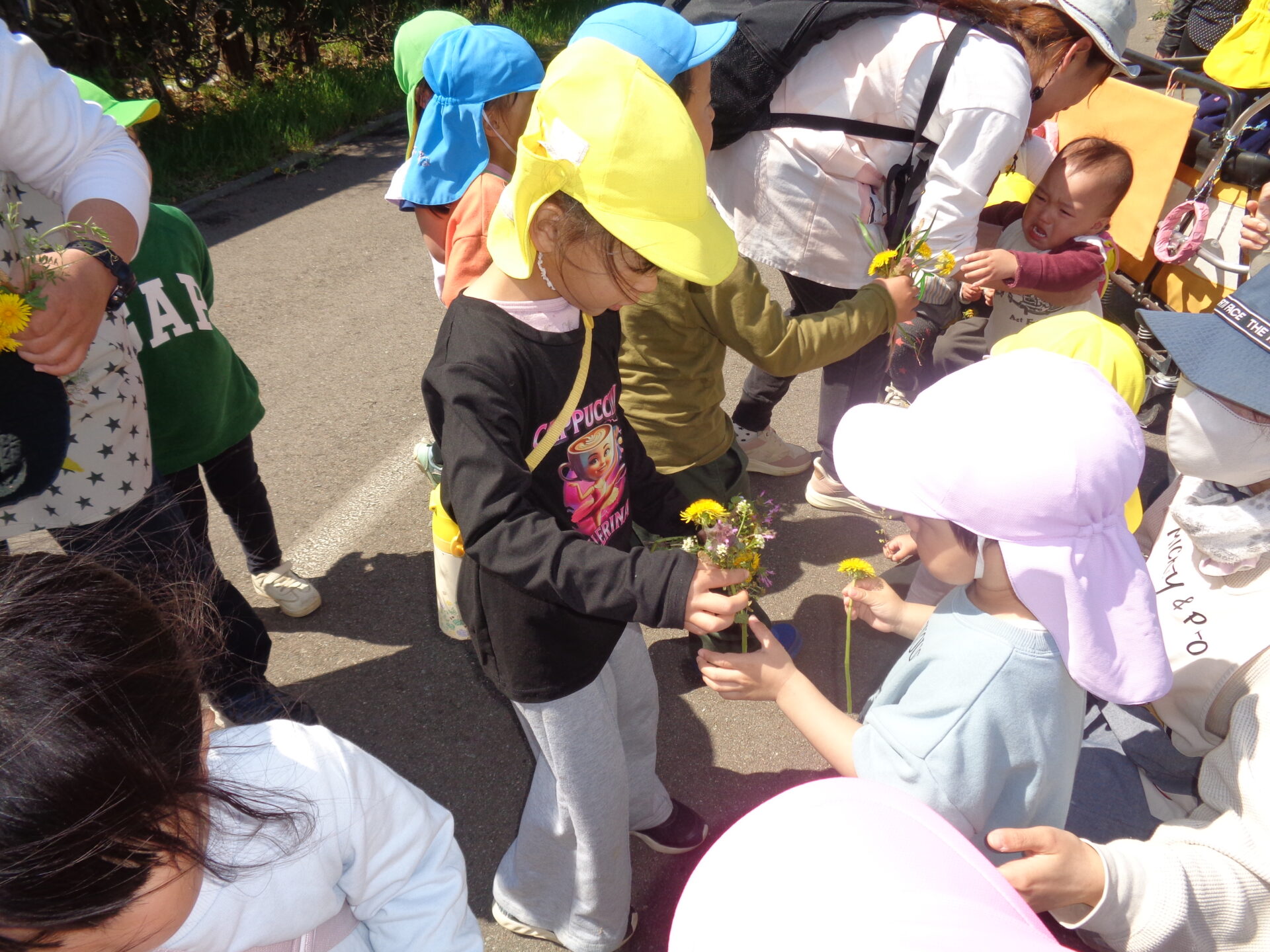 遊歩道へ散歩に行った時に草花を見つけ摘んでいると、“未満児さんに渡したい!”という話になり、