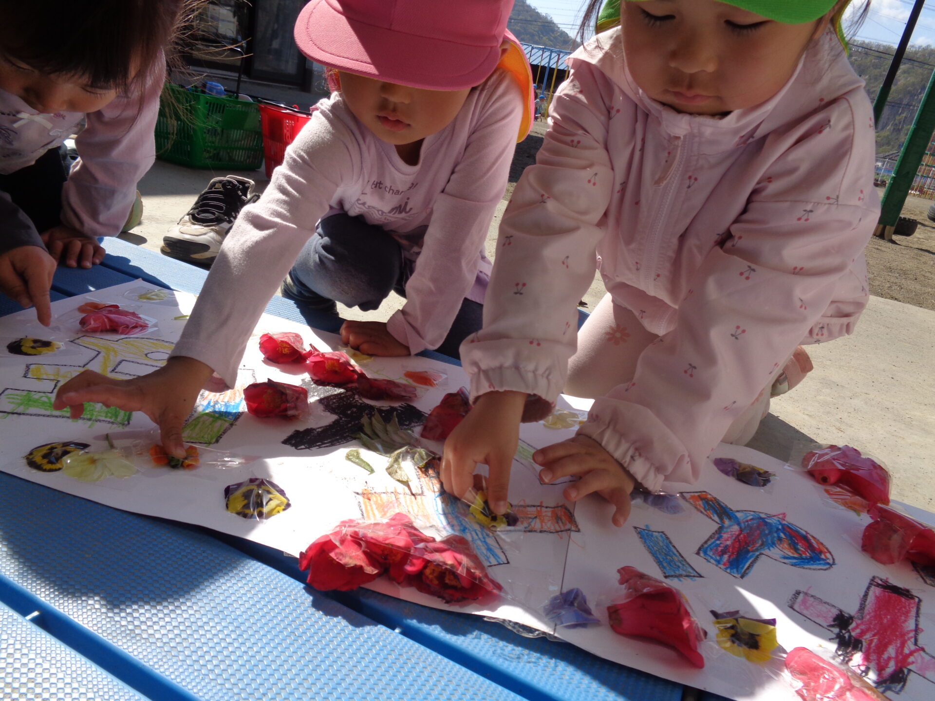 「ピンクの花はどこにあるの?」「ピンク色も欲しい」と色合いを考えたり、