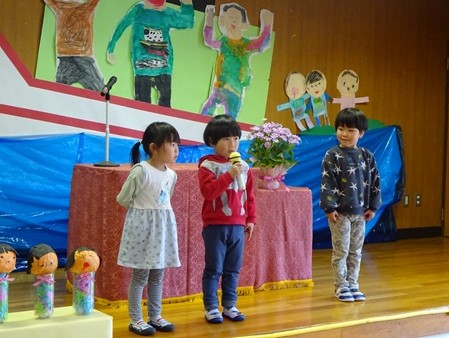 進級式を行い、年中さんでやってみたいこと・がんばりたいことを発表しました
