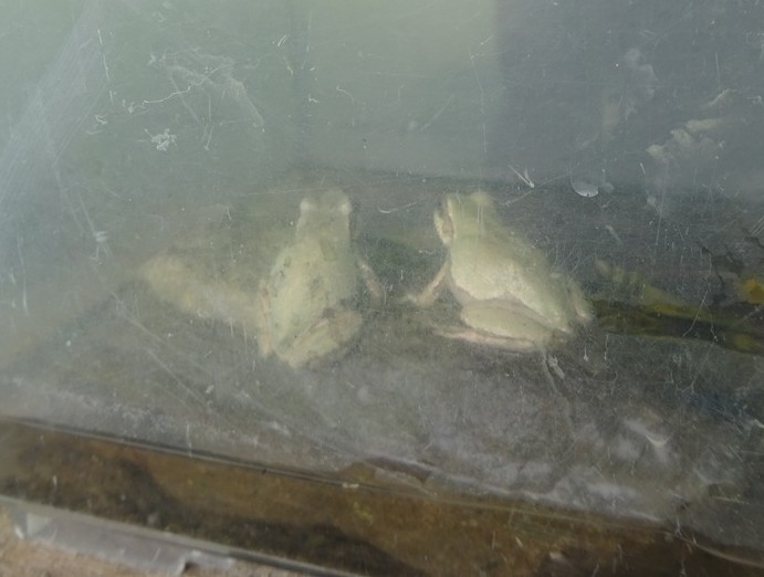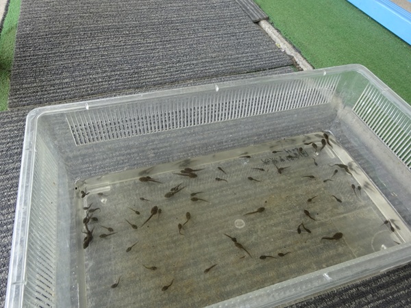 散歩で、園庭でつかまえたカエルも仲間入りしています。
