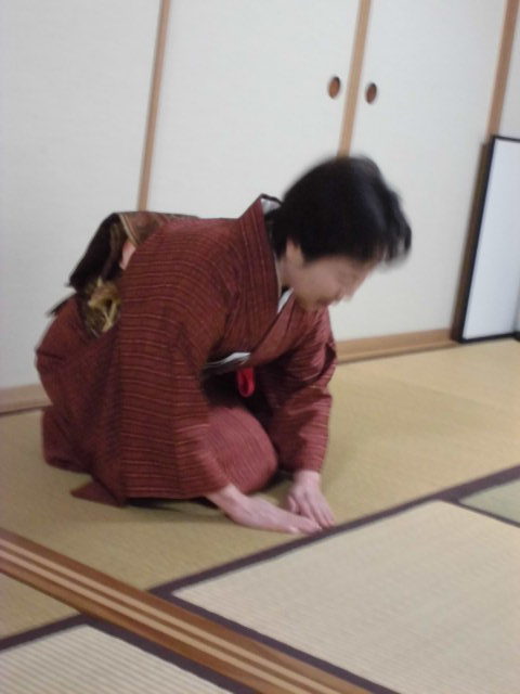 ①畳のヘリを踏まないように歩いて、正座をする。