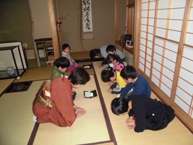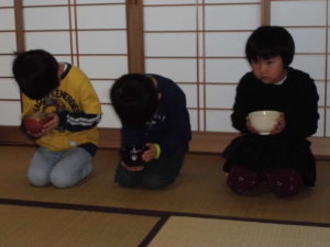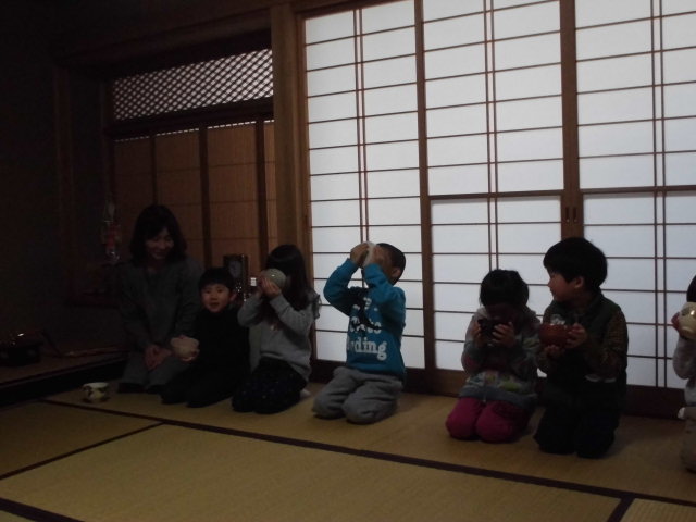 いろいろ作法があって緊張したけれど、お茶も保育園も周りの人の気持ちを考えて行動するというところでは、同じことを教えてもらったな。と、子ども達なりに感じたところあったかな?
