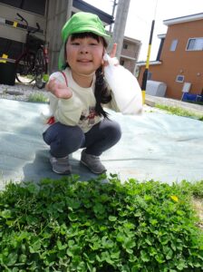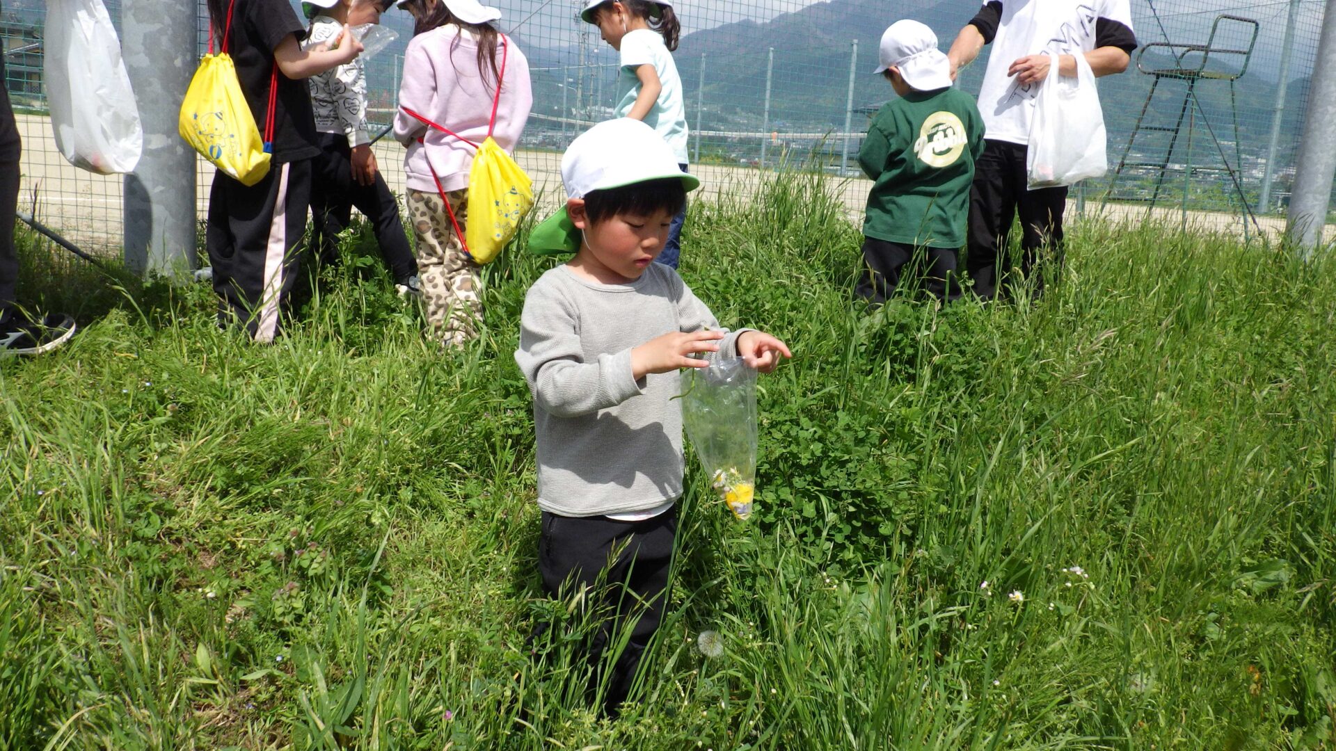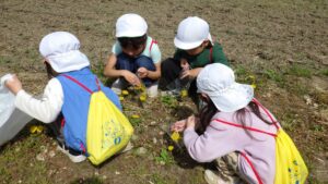 ・前回の春探しで伝えた花の名前をよく覚えていて友だちとも教えあいながら摘むことが、また楽しかったようだった。