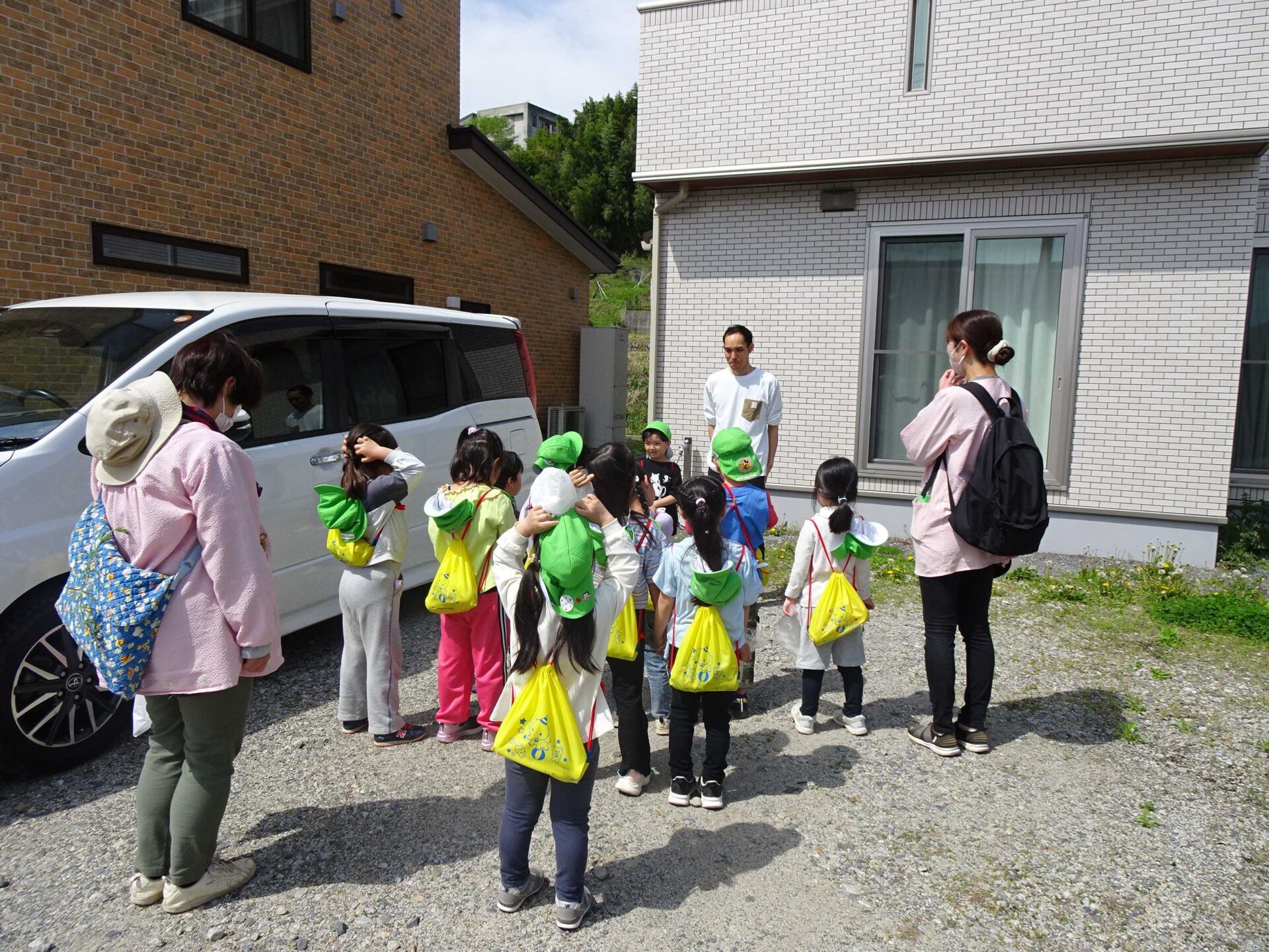 以前からHくんが「僕の家にはクローバーやたんぽぽがたくさんあるから来て。」と言ってくれていたのでお邪魔しました。お父さんが待っていて出迎えてくださいました。