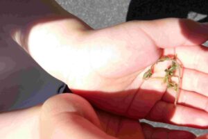 「ブェ~~~💨」という音に振り返ると先生が吹いているの草笛の音😮