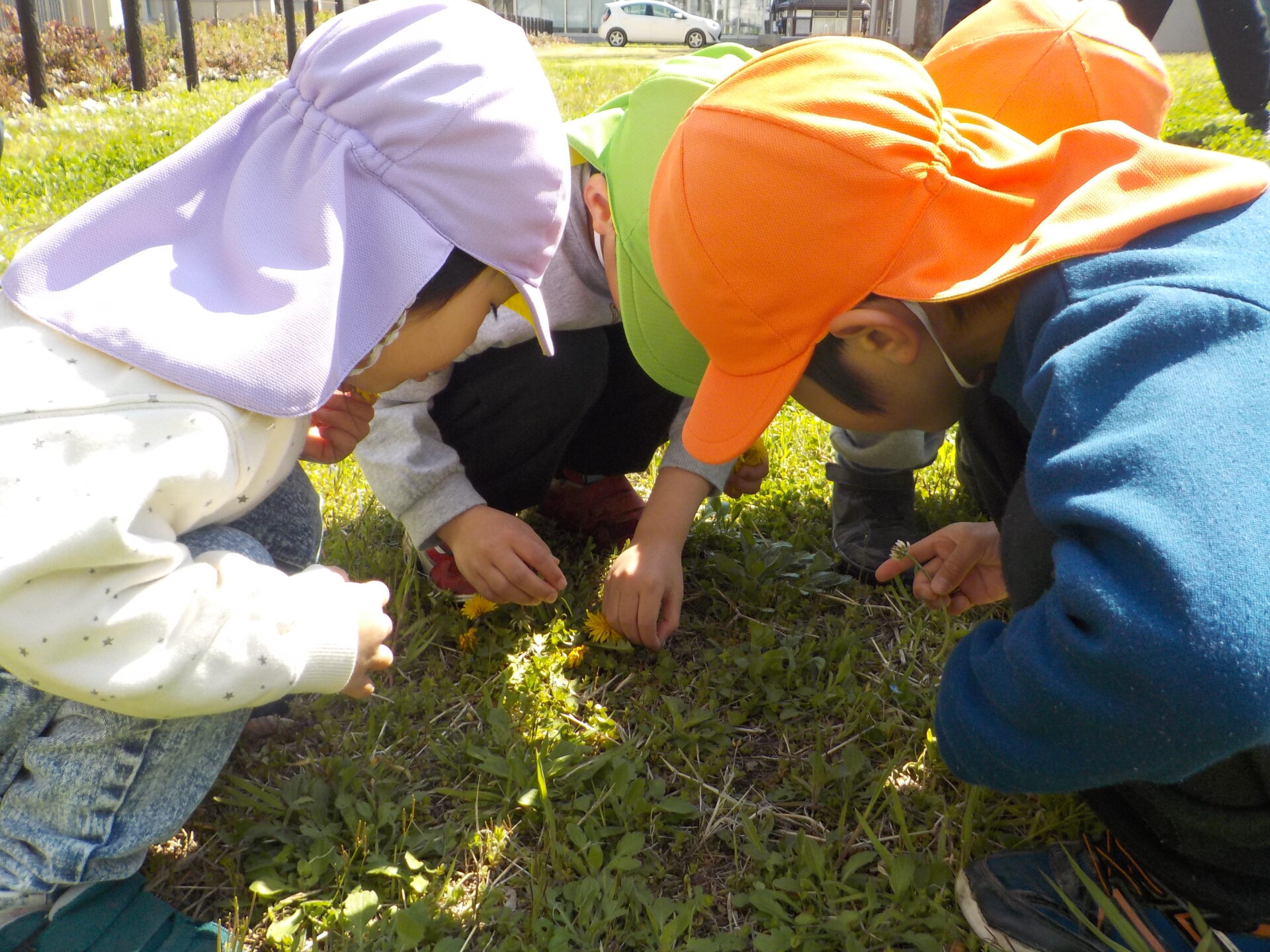 「たんぽぽ、みぃ~つけた!!」と子ども達の可愛らしい声があちらこちらから聞こえていました
