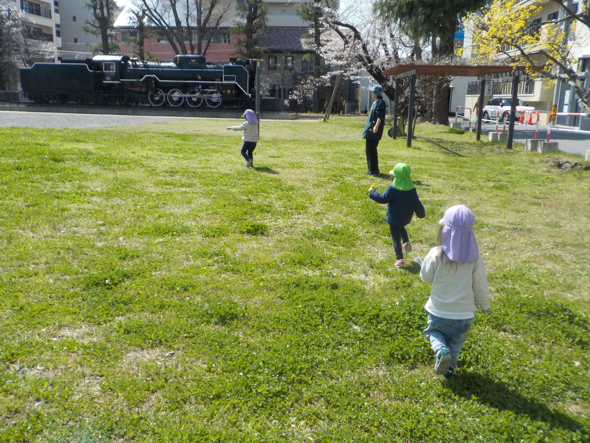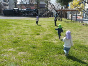 天気の良い日は園前のSL広場をお借りしてのマラソンが日課となっています!