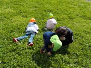 たくさんのクローバーの中から見つけ出してくる子ども達の集中力、観察力、目の良さに驚かされます