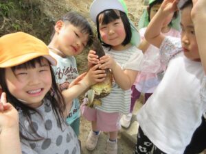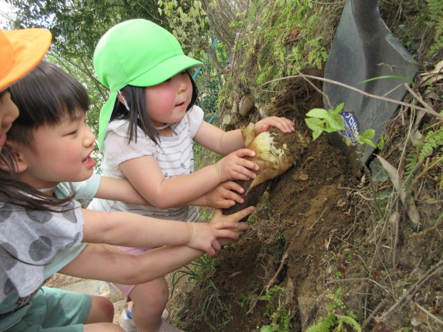 ✿【たけのこ掘り】を通して探して見つける喜び、友達と協力して掘る楽しさ、掘り出した達成感を味わってほしい。