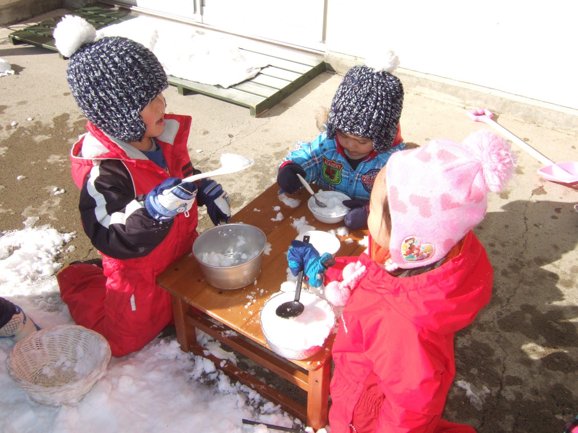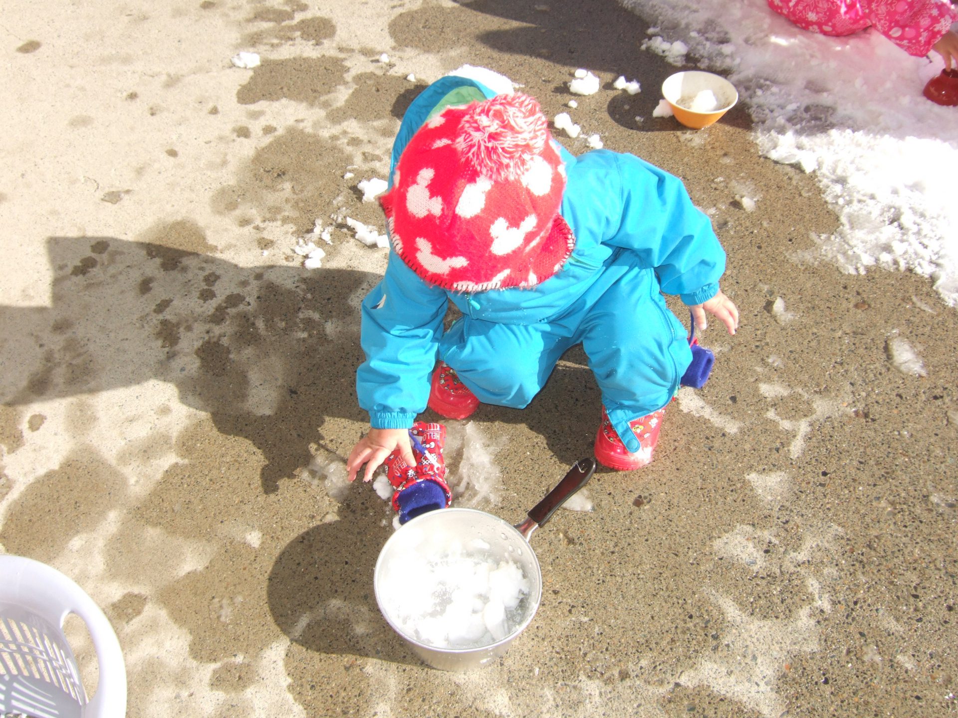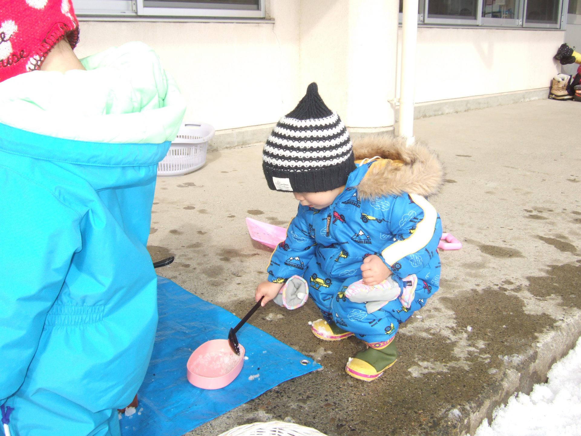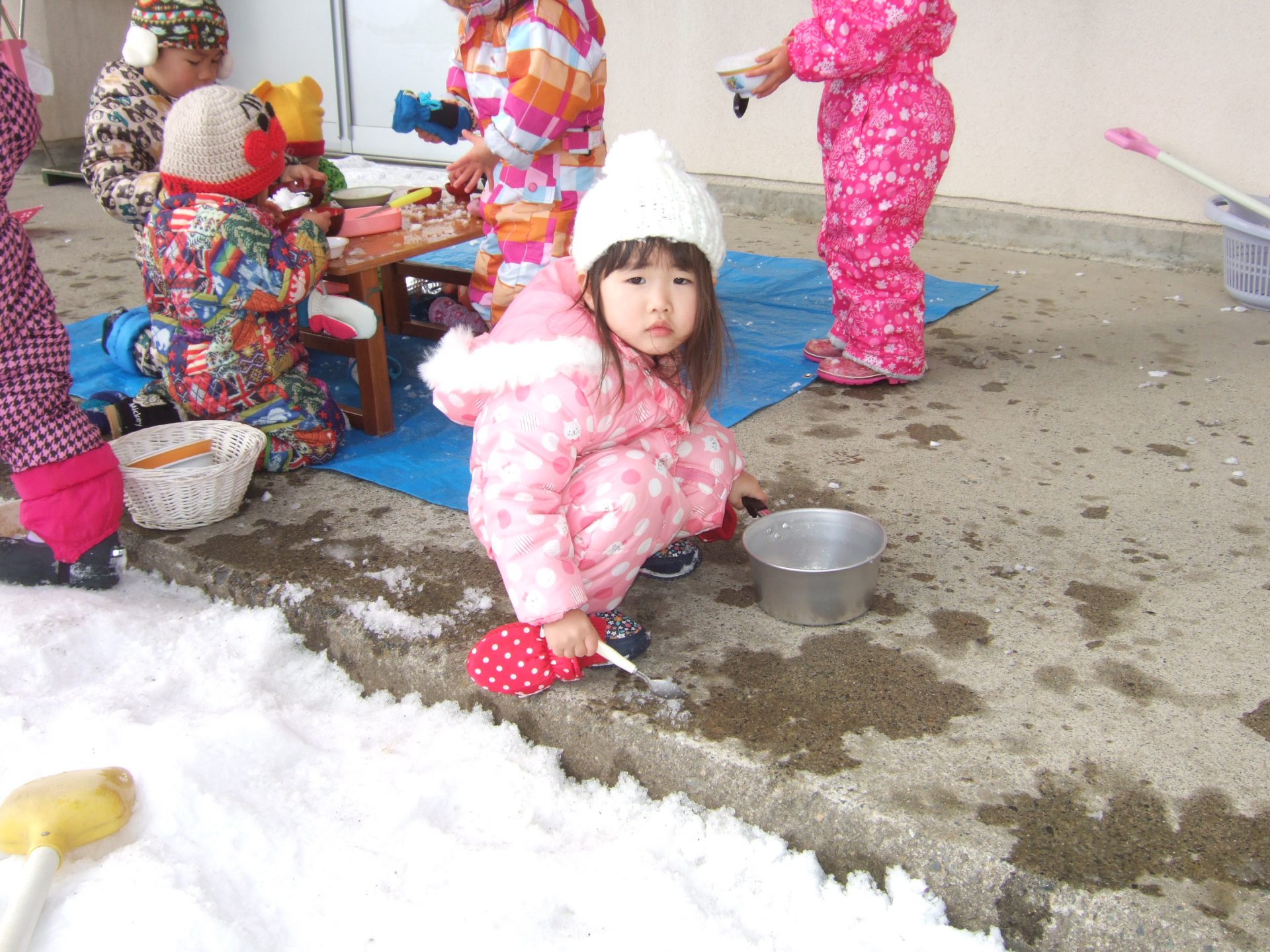 おたまの中に雪をすくって運んでいるお友達もいます。