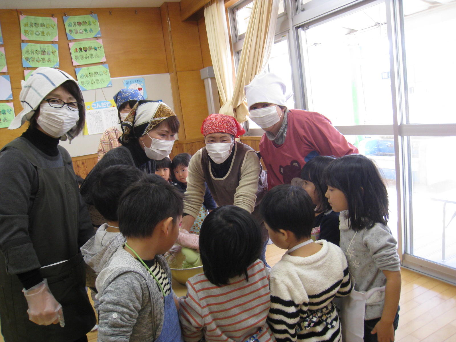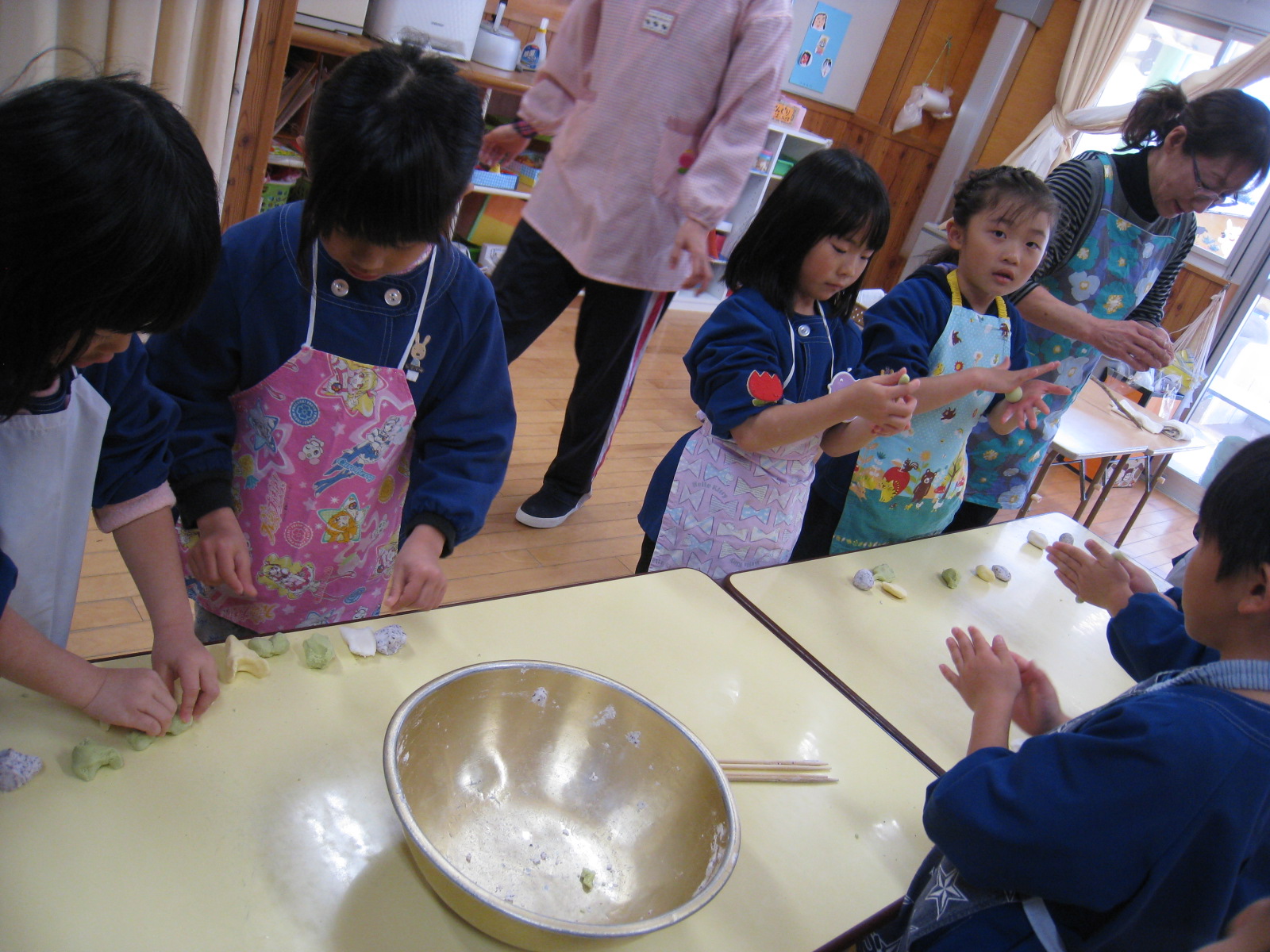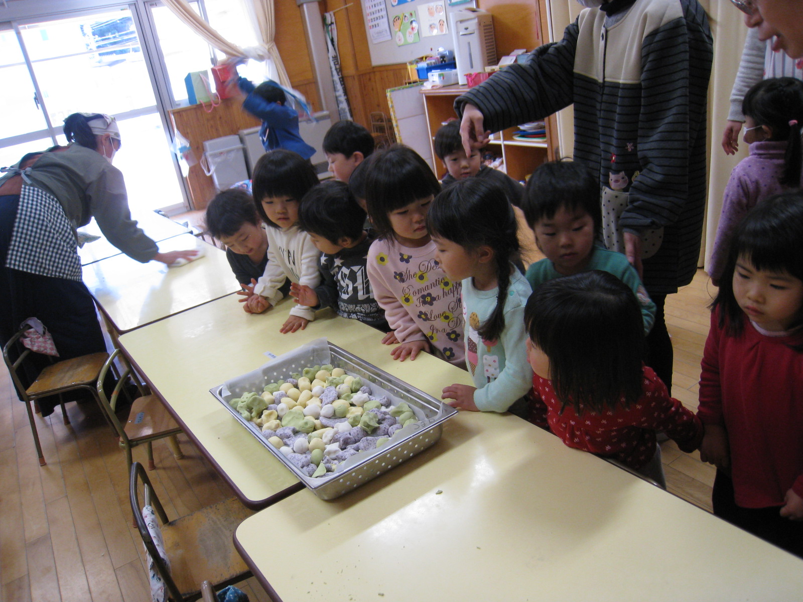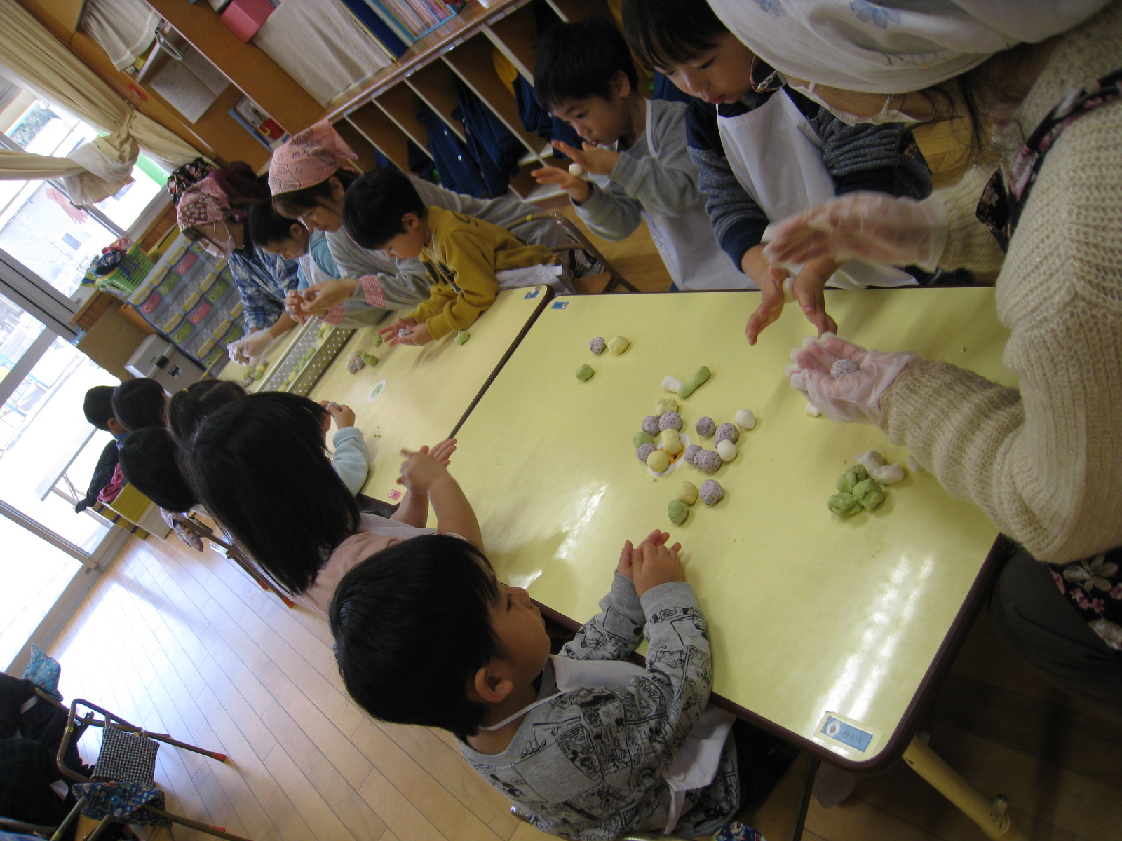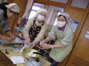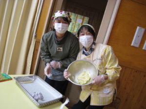 小正月の伝統行事である『ものづくり』に地域の方にも参加していただき、お粉をこねて下ごしらえをしていただきました。